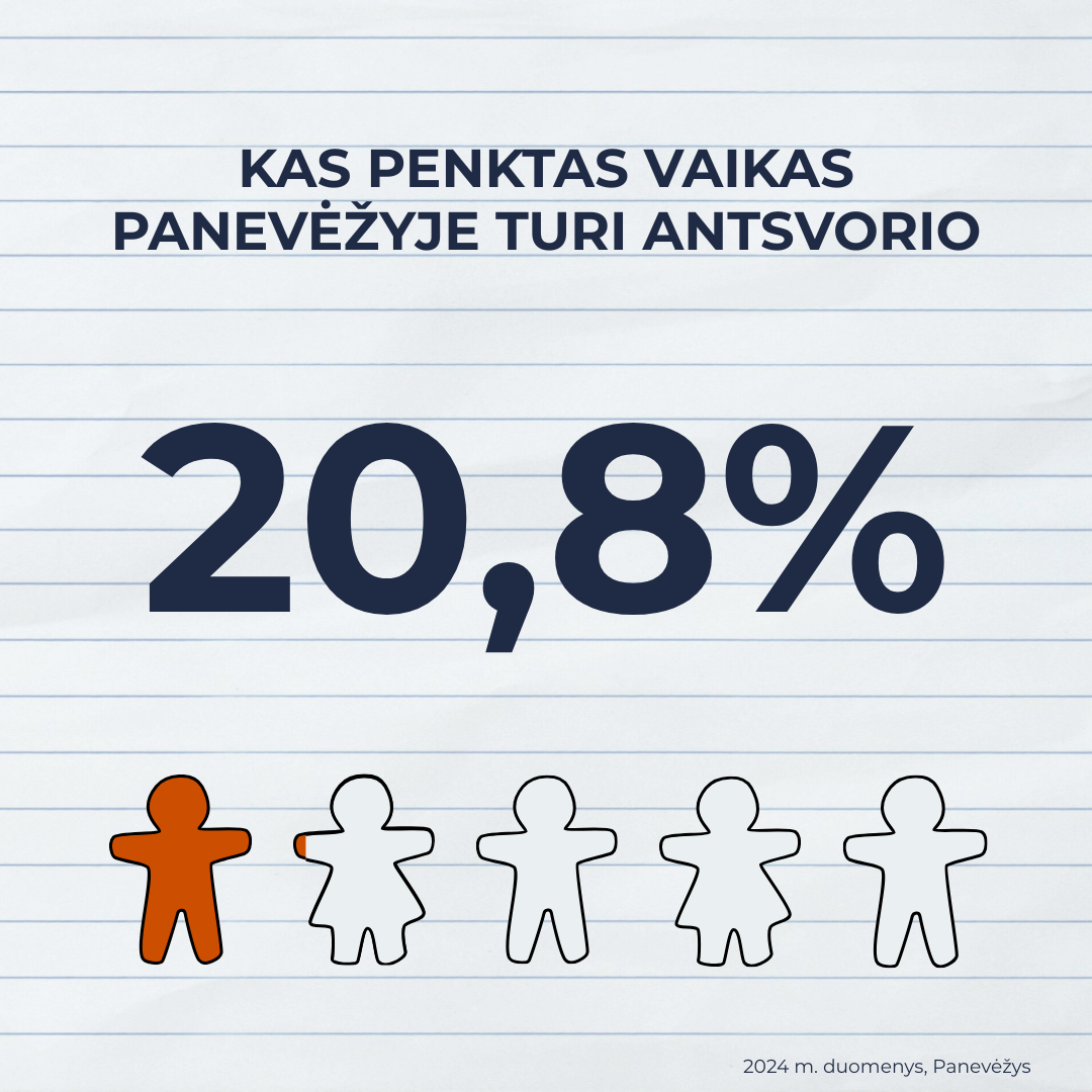 Remiantis Higienos instituto turima oficialia šalies statistika, Panevėžyje 2024 m. berniukų antsvorio paplitimas 11–17 m. amžiaus grupėje buvo 2,2 proc. didesnis, o mergaičių nutukimo paplitimas 7–10 m. amžiaus grupėje — 1,4 proc. didesnis. Lyginant su kitais didžiaisiais Lietuvos miestais, Panevėžyje nustatyti aukščiausi vaikų antsvorio rodikliai, tačiau nutukimo paplitimas buvo mažesnis — didžiausias nutukimo rodiklis fiksuotas Šiaulių mieste.