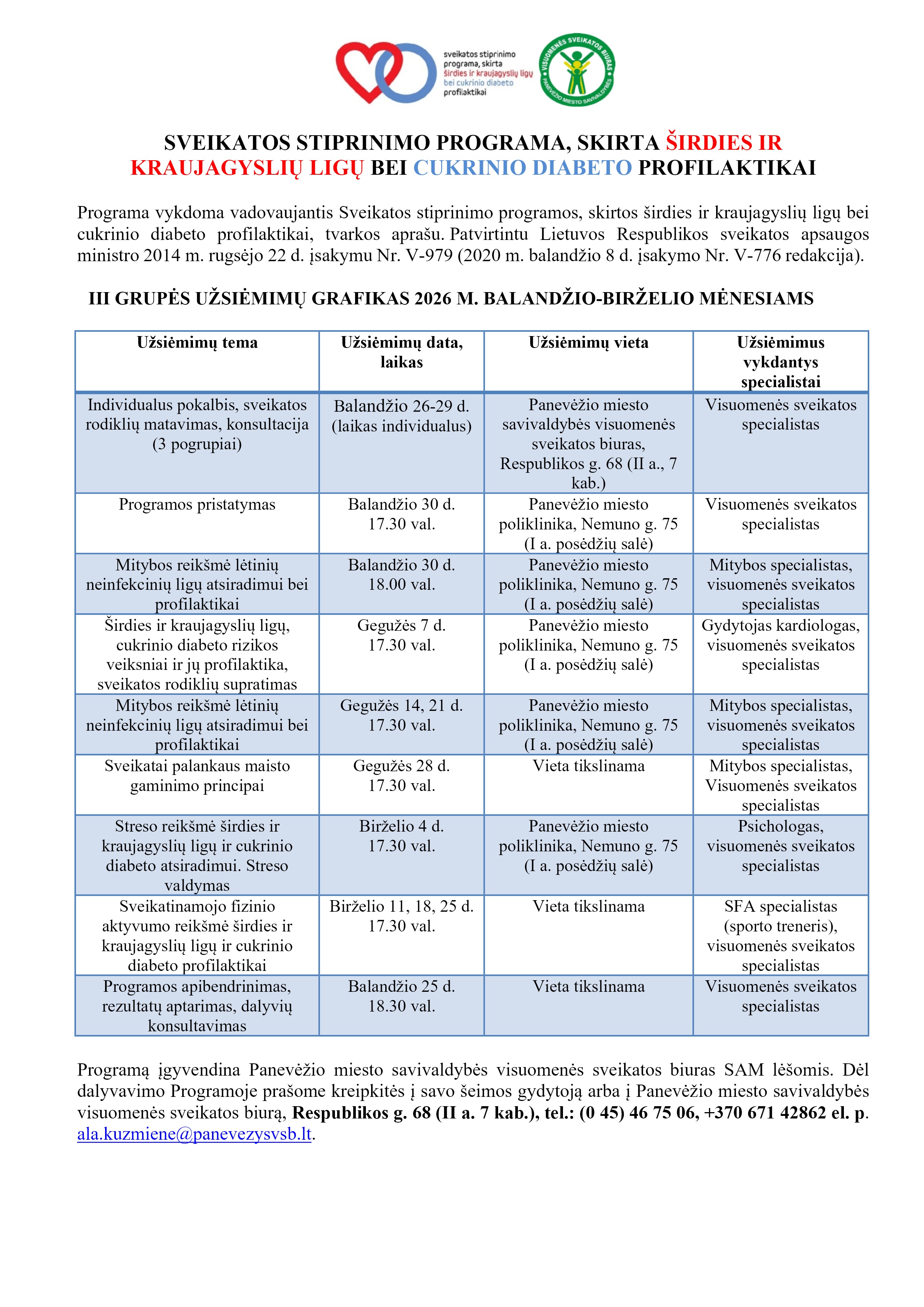 Sveikatos stiprinimo programa, skirta širdies ir kraujagyslių ligų bei cukrinio diabeto profilaktikai