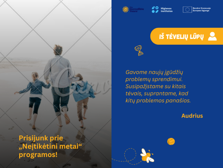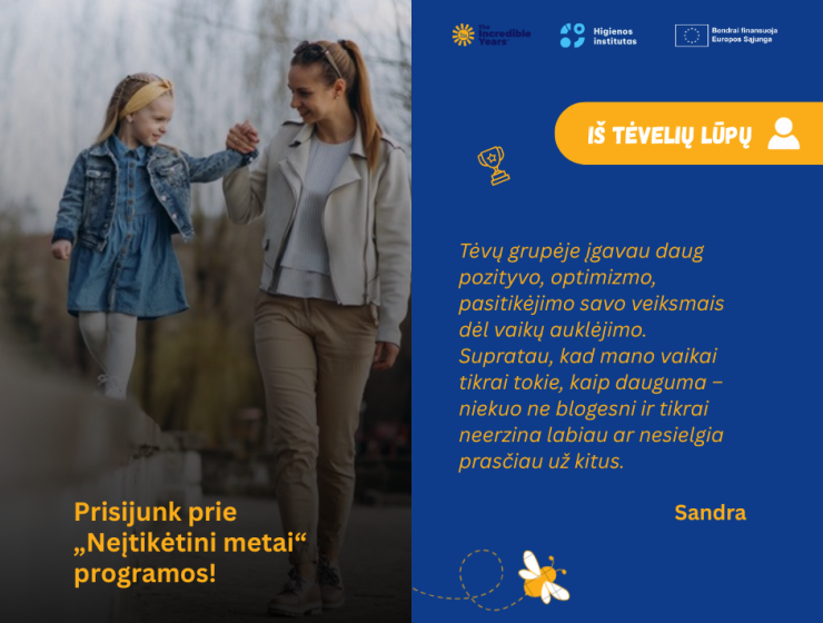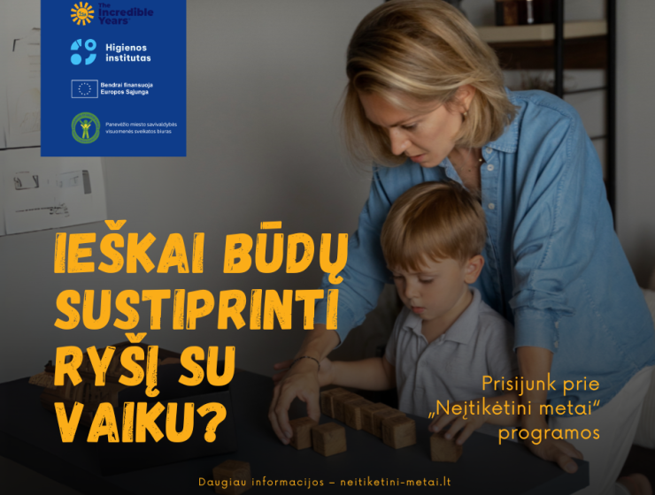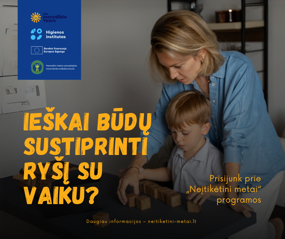 Užsiėmimai yra ES finansuojamo projekto „Sveikatos stiprinimo programų tėvams „Neįtikėtini metai“ ir „Augame žaisdami“ organizavimas“ dalis.