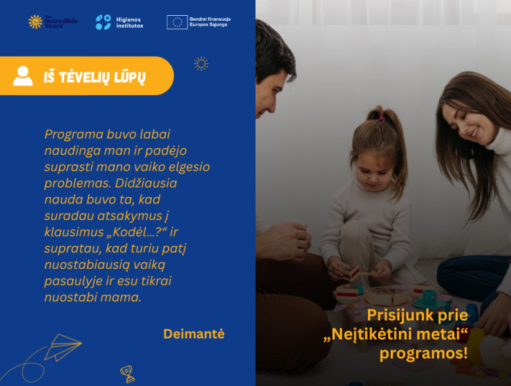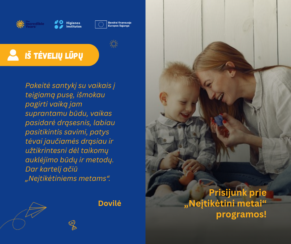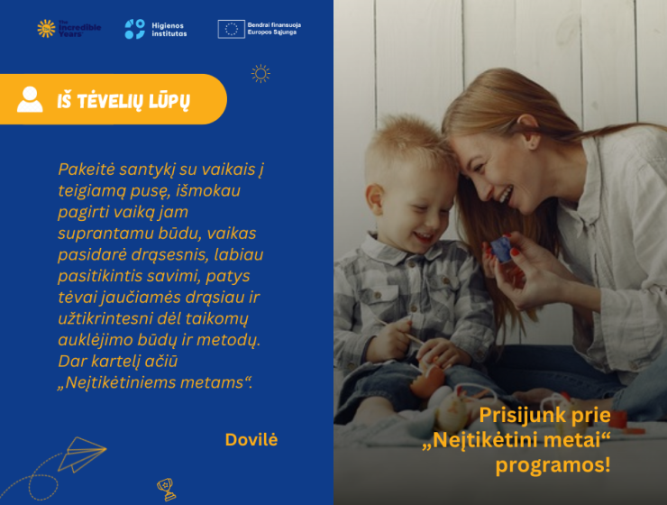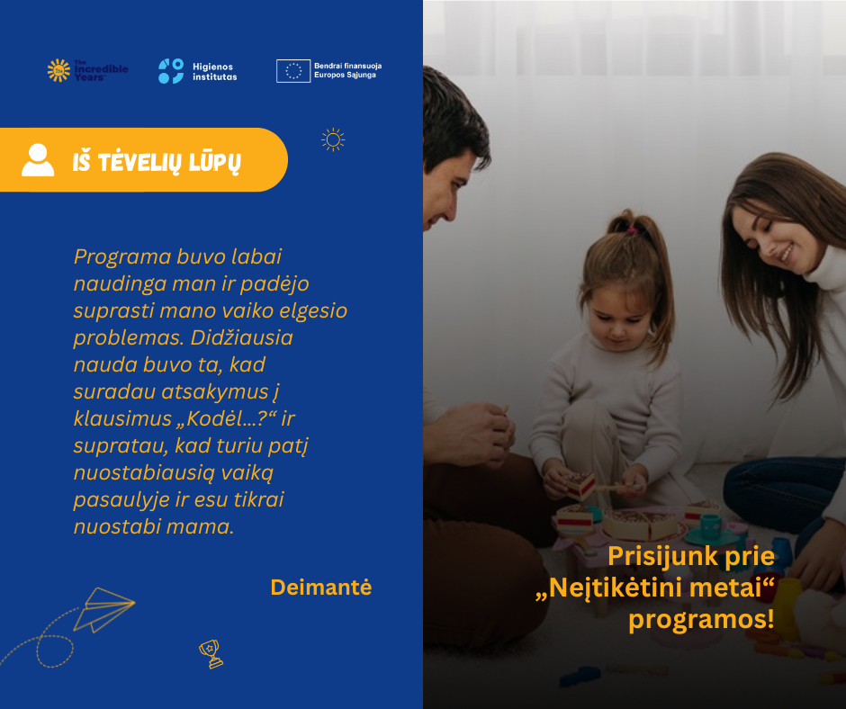 Kviečiame tėvus dalyvauti programoje „Neįtikėtini metai“ (angl. The Incredible Years®)!